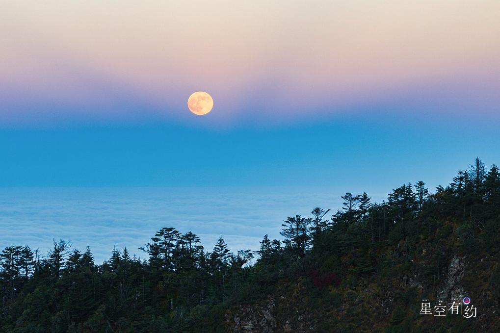 10月17日在四川牛背山拍摄的年度最大满月。(戴建峰摄)