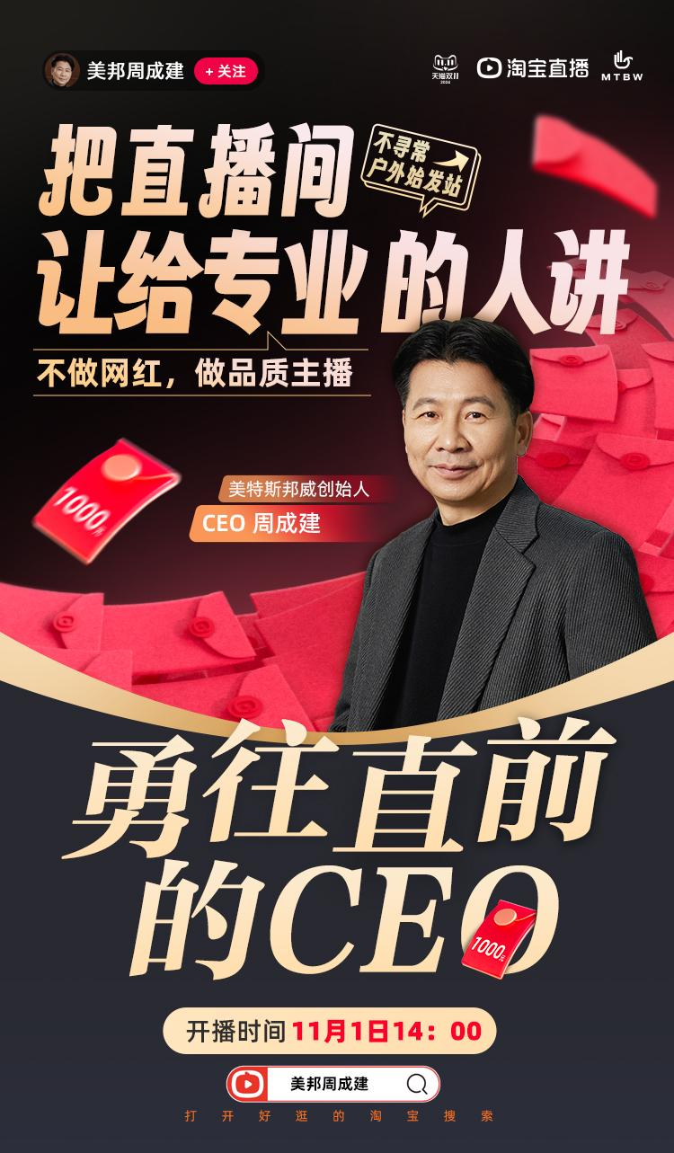 10月29日上午9点,美特斯邦威创始人周成建通过官微公开发布了《周成建的一封家书》,宣布将于11月1日开启入淘直播首秀。