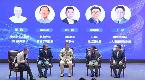 在论坛的圆桌对话环节中,中关村人才协会执行副理事长王钧担任主持人,他与邓志鸿、于泳、李建忠以及贝塔智能董事长张开翼等嘉宾一起,围绕“AI人才生态:海淀实践经验与问题对策”这一主题展开了深入的探讨和交流。他们结合海淀区的实际情况,分享了各自在AI人才生态建设中的经验和做法,并就如何进一步优化人才生态、吸引和留住更多优秀人才等问题提出了宝贵的意见和建议。