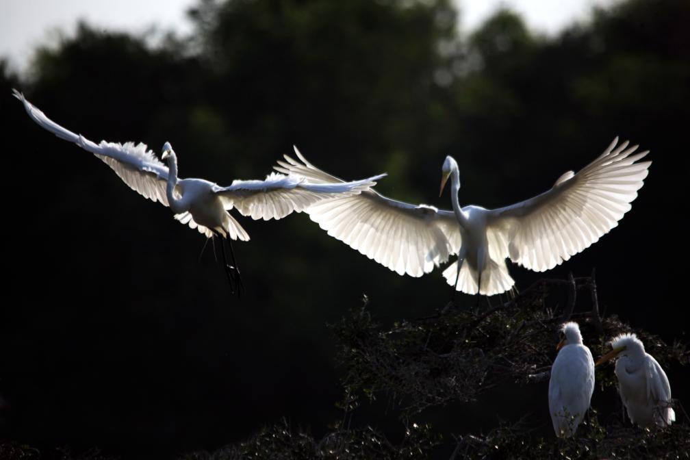 这是2014年5月在位于美国得克萨斯州东南部墨西哥湾沿岸的高岛鸟类湿地保护区拍摄的白鹭。新华社发(贾忠摄)