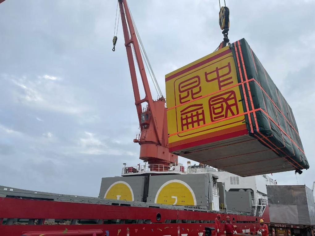 用于中国第41次南极考察的“极地科考增压建筑”吊装上船(10月25日摄)。新华社发