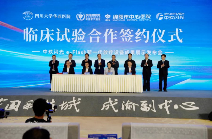 在当天的发布会上,四川大学华西医院、四川省肿瘤医院、绵阳市中心医院和中玖闪光还举行临床试验合作签约仪式。