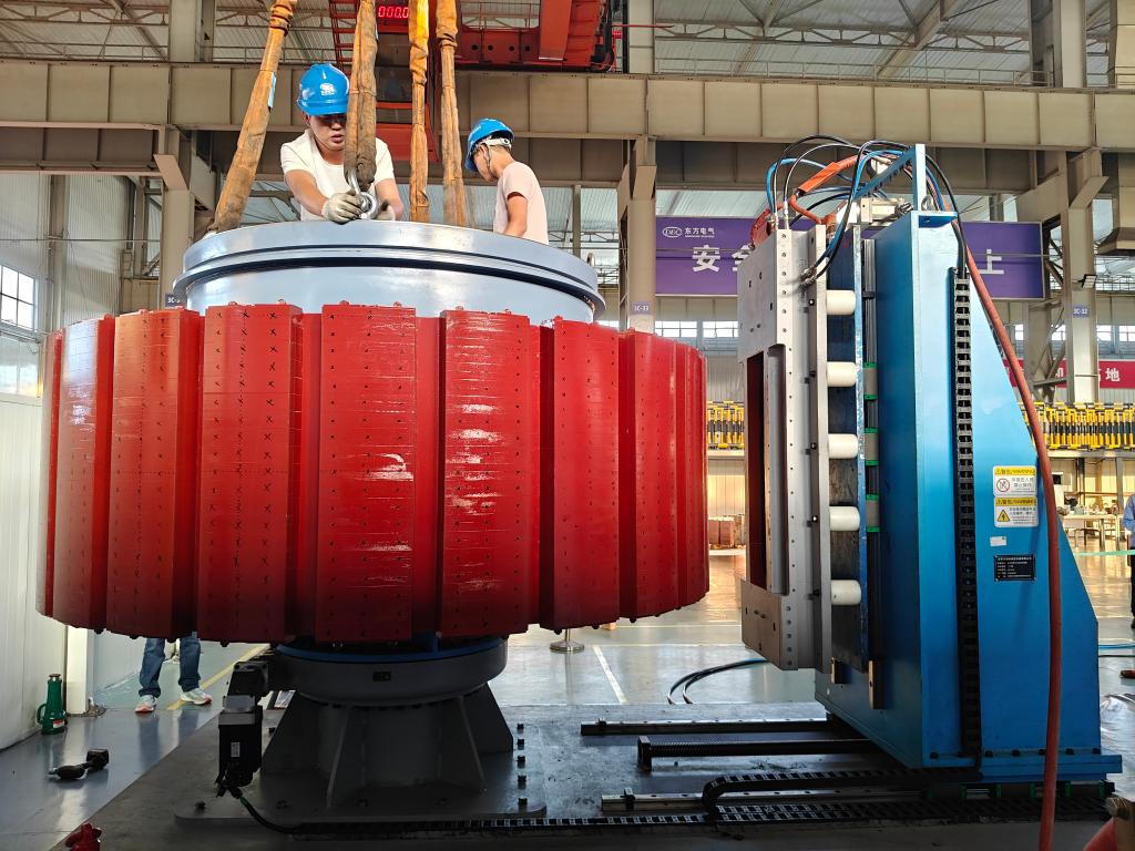 据介绍,永磁风力发电机是我国风力发电的主力机型,其核心部件永磁磁极由众多磁钢拼装而成。由于磁钢带有磁性,相互间存在巨大排斥力,传统“先充磁后组装”的制造技术,存在组装难度大、效率低等问题。针对传统工艺缺陷,李亮团队创新提出先无磁装配、再整体充磁的方法,并陆续实现2.5兆瓦至26兆瓦风力发电机整体充磁。