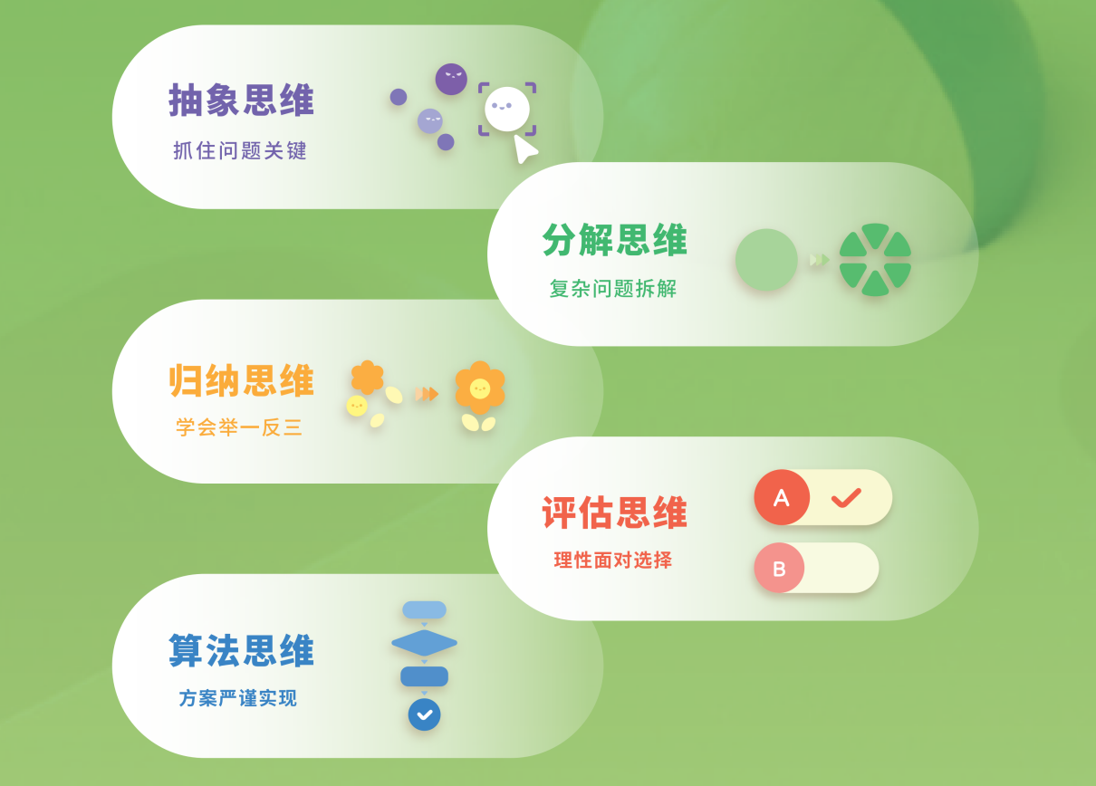 猿编程作为计算思维领域的引领者,专注于帮助青少年提升科技素养,培养计算思维,激发创新潜能。2023年,猿编程团队自主研发了《计算思维》课程,将计算思维精炼为五大核心能力:抽象思维、算法思维、分解思维、归纳思维和评估思维。