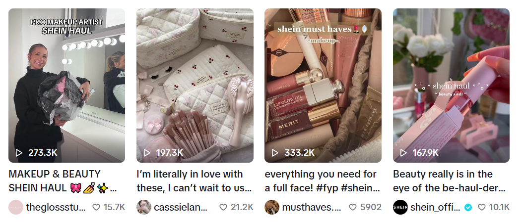 消费者录制了很多开箱SHEIN得到的美妆好物