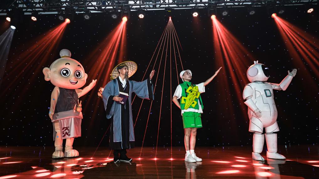 灸童是中华中医药学会联合中国动漫集团推出的中医药动漫形象。启动仪式上展演的精编版中医药主题跨界融合舞台剧《药圣》,讲述了灸童带着小男孩豆豆、机器人叨叨与穿越而来的明代医药学家李时珍互动,了解《本草纲目》编写历程和伟大贡献的故事。该剧利用裸眼3D等数字技术,将动漫元素与歌舞、武术等表演元素融合,打造全景式、沉浸式观剧体验。