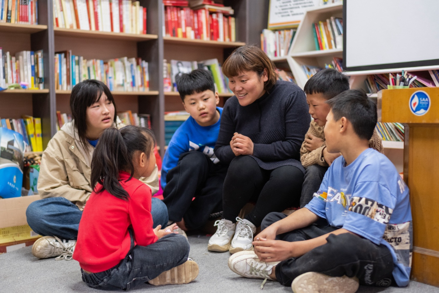 微光书苑里,李翠利和孩子们分享最近读到的书、遇到的趣事儿