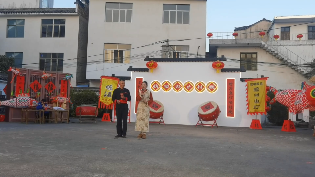 48岁的村民郑冬蛟是本次“村晚”的发起人,作为瞻淇鱼灯非遗传承人,他邀请乡村艺人们一起献艺此次“村晚”,并再现了“一夜鱼龙舞”的盛景。