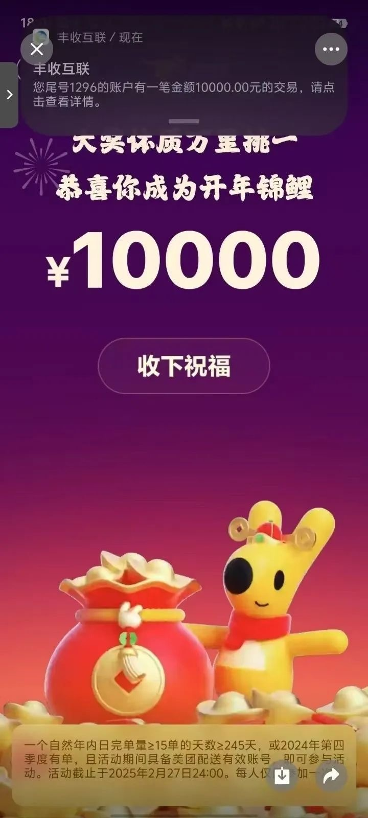 中奖骑手在在美团官方微信号评论区晒出的截图