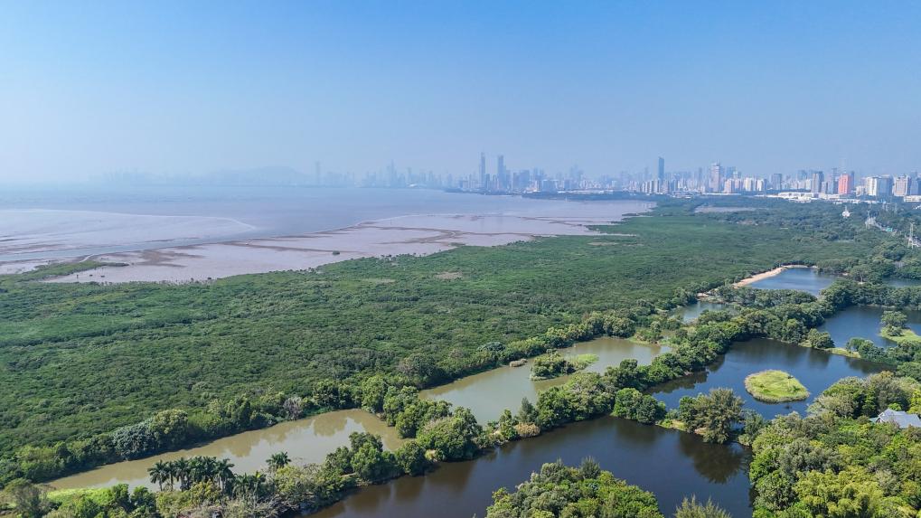 这是2024年11月6日拍摄的深圳福田红树林湿地(无人机照片)。当日,国际红树林中心成立协定在深圳正式签署,首批18个成员国代表共同签署协定并为国际红树林中心揭牌。新华社记者 梁旭 摄