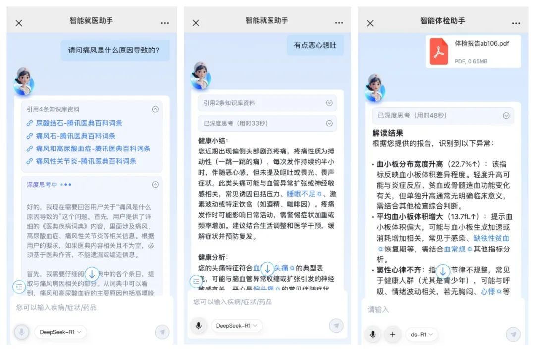 此外,腾讯健康还在基因组学、药械数字化方面推进 DeepSeek+ 腾讯混元 的“双模”大模型组合。