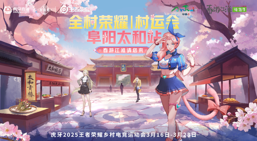 3月16日,由阜阳市文化旅游体育局、太和县人民政府主办,太和县文化旅游体育局、虎牙直播承办的虎牙王者荣耀村运会阜阳太和站在太和县沙颍河国家湿地公园正式启幕。本届村运会以“春游江淮请您来,峡谷开团会友”为主题,通过电竞与文旅深度融合,吸引全国游客共赏太和樱花盛景,体验非遗文化魅力,为乡村振兴注入数字化新动能。