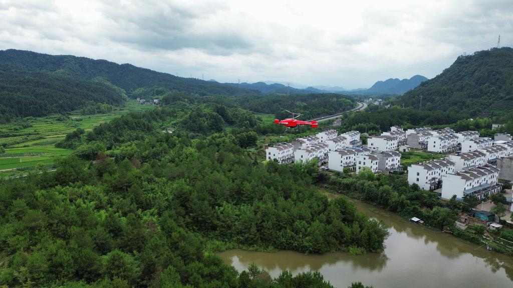 2024年6月,TD550无人直升机在安徽黄山抢险救援中建立应急通信(资料照片)。新华社发