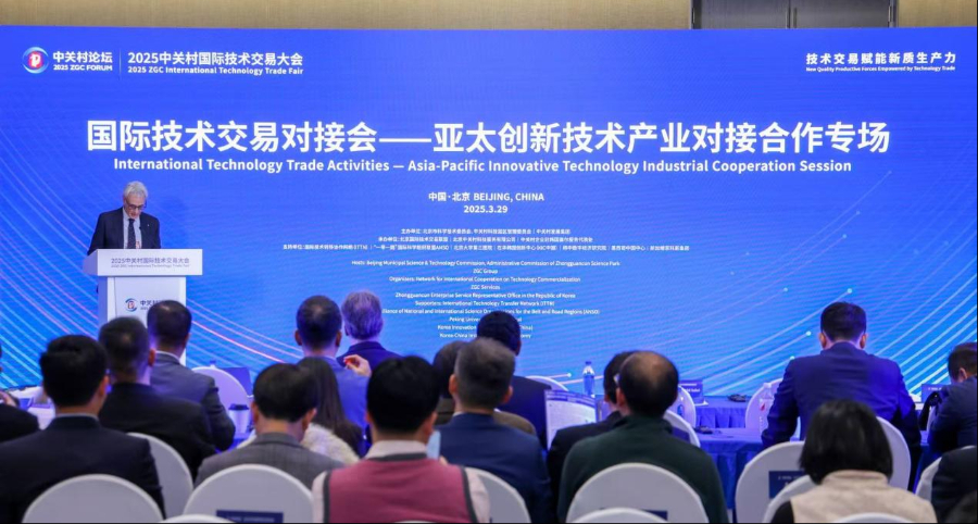 3月29日下午,2025中关村论坛年会中关村国际技术交易大会国际技术交易对接会—亚太创新技术产业对接合作专场在北京中关村展示中心举行,活动由北京市科学技术委员会、中关村科技园区管理委员会,中关村发展集团主办,北京国际技术交易联盟、北京中关村科技服务有限公司、中关村企业驻韩国首尔服务代表处共同承办。