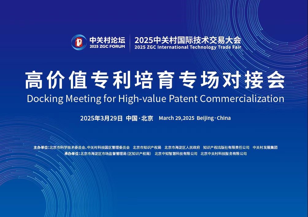 中关村论坛是面向全球科技创新交流合作的国家级平台,2025中关村论坛年会年度主题为“新质生产力与全球科技合作”,中关村国际技术交易大会是中关村论坛的重要组成部分。高价值专利培育专场对接会于去年中关村论坛年会期间首次举办,是中关村论坛唯一以“高价值专利”为主题的专场活动,旨在集中展示支撑高价值专利培育这一专利转化运用关键环节的新模式、新产品、新服务,促进形成新质生产力,有力支持全面创新。