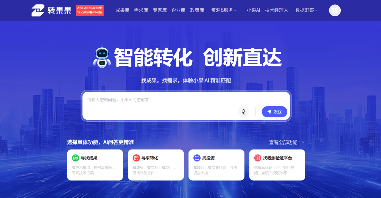 依托先进的AI算法,平台可实现对成果属性、行业需求、转化路径等多维度信息的深度解析,从而进行高效的自动化匹配,显著提升对接效率与成功率。