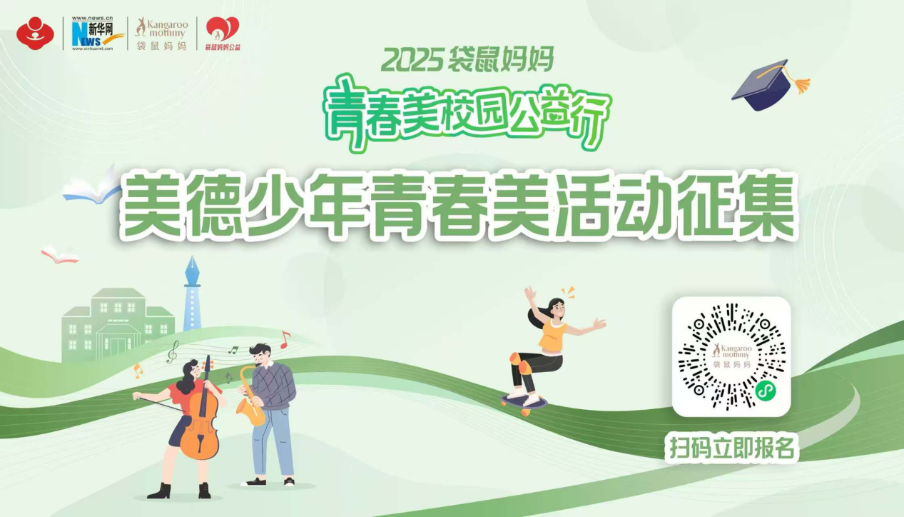 近日,由中国关心下一代工作委员会教育中心,新华网及广东袋鼠妈妈集团联合发起“青春美校园公益行之美德少年青春美活动征集”正式启动。活动汇聚各方优势资源,精心搭建起集创意展示、交流互动、成长激励于一体的综合性舞台,为青少年提供了一个尽情展现自我的创新平台。