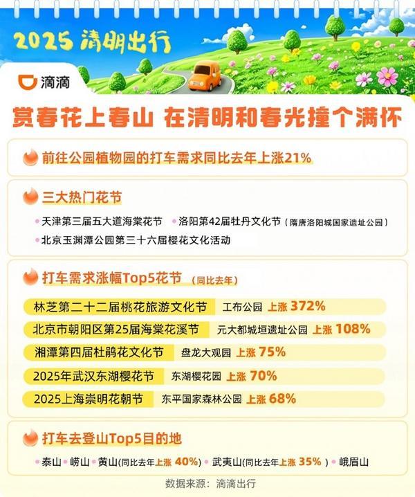 赏春花打车需求上涨21% 泰山领衔多地上春山热潮
