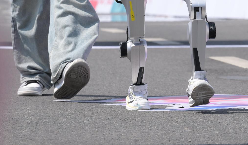4月19日,小顽童队选手松延动力N2在比赛中。新华社记者 李贺 摄
