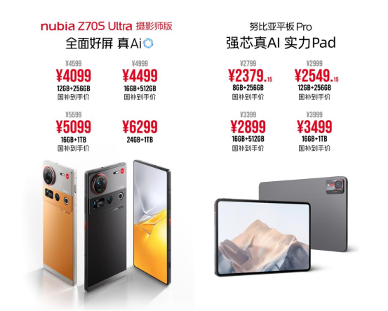 4月28日,努比亚推出努比亚Z70S Ultra摄影师版及努比亚平板 Pro两款AI新品。