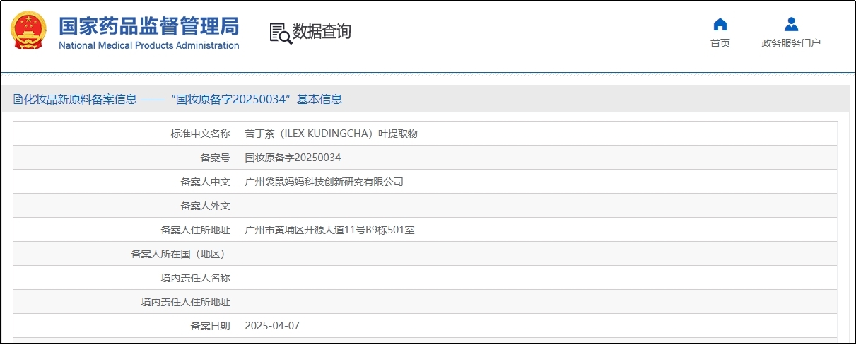 近日,据国家药品监督管理局公示平台显示,袋鼠妈妈集团研发的新原料——苦丁茶叶提取物,已完成化妆品新原料备案(备案号:国妆原备字20250034)并公示。这一新原料的成功备案,不仅彰显了袋鼠妈妈在青少年护肤领域的深厚实力,更是青少年护肤行业的新突破。
