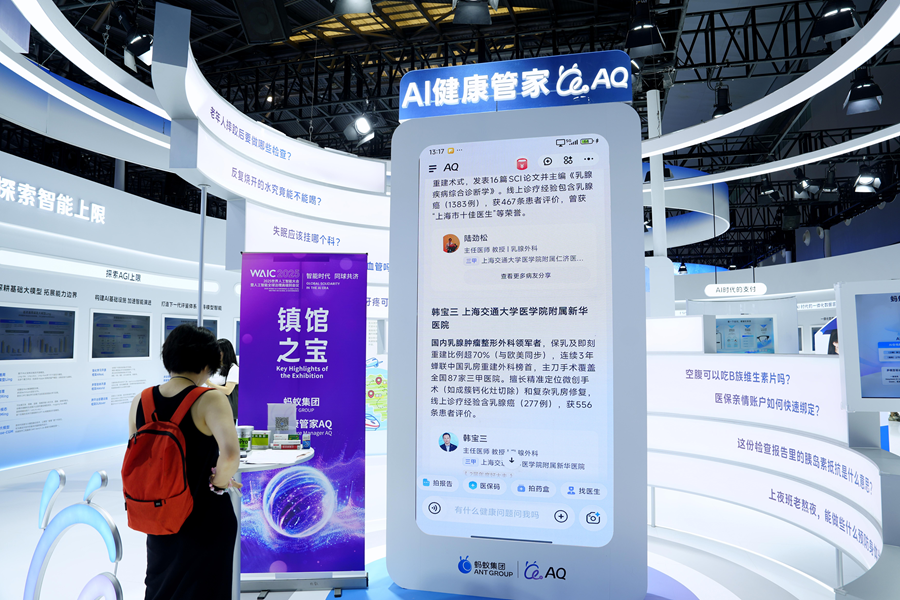 WAIC2025展会现场,观众体验蚂蚁AI健康管家AQ