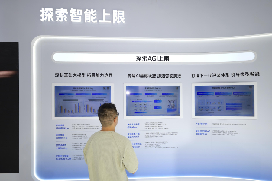 AI拓展普惠服务的边界,但扎实的技术是根基。为了更具想象力的应用,蚂蚁集团全力攻坚AGI,探索AI智能上限。在展区观察,蚂蚁集团全栈布局AI,在AI Infra、大模型等层面都有不错表现,并积极开源,对行业开放共建AGI能力。
