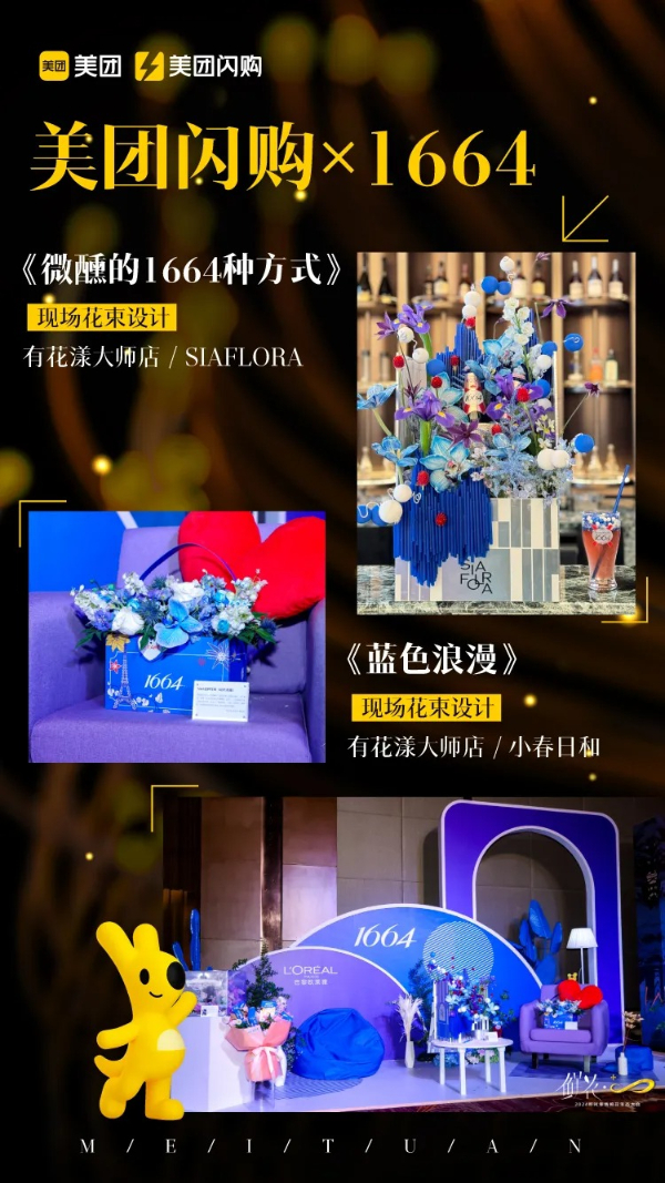 花漾小酌,浪漫加分。美团闪购鲜花与酒类品牌1664跨界联动,推出联名款花束和创意花盒,过往的合作中,在美团站内重点资源扶持的助推下,这些产品迅速引爆市场。高颜值、有创意的花束与花盒,迅速成为社交网络上的高价值感传播爆品。无论是浪漫约会还是好友聚会,都让消费者的生活更添几分美丽与惊喜。