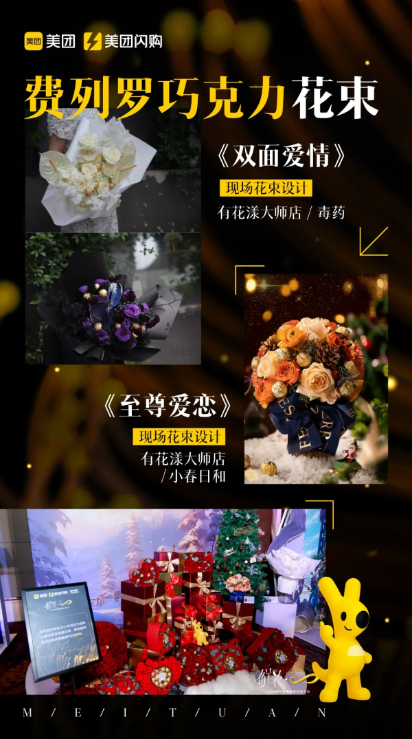 尝尝这充满爱意的巧克力吧!去年520,美团闪购鲜花与费列罗联手,精心打造了一款甜蜜巧克力花束,瞬间成为爆款!销量突破万单,GMV超200万,10000+花店参与联名,共同演绎了一场浪漫与甜蜜的盛事。品牌通过平台流量扶持,获得了海量曝光,花店则借助平台获取了费列罗的优质货源,三方共赢,共同增长。这次成功合作,为鲜花行业的发展树立了协同共赢的新范式。