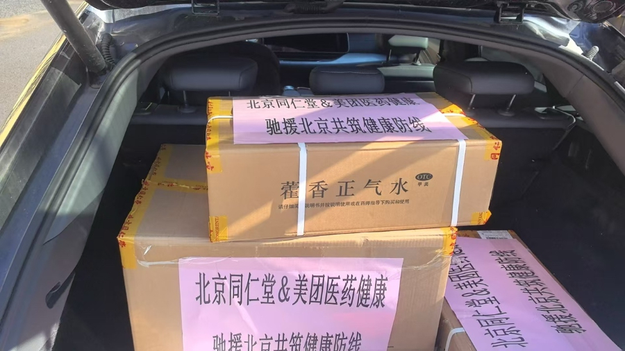 美团医药健康联合北京同仁堂捐赠的医疗物资已发车送往怀柔等地