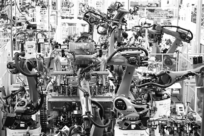 图为机械臂等自动化生产设备在天津经济技术开发区一汽-大众华北基地焊装车间作业。记者 赵子硕 摄