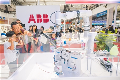 南京埃斯顿自动化股份有限公司(简称“埃斯顿”)展区内,一处码垛工作站正有序运行着:机械臂前端的12个真空吸盘,稳稳吸起传送带上的货箱,轻松转移到一旁的物料托盘上方并轻轻码好。两三分钟后,数十个货箱就被摞成了一个立方体,严丝合缝,整整齐齐。