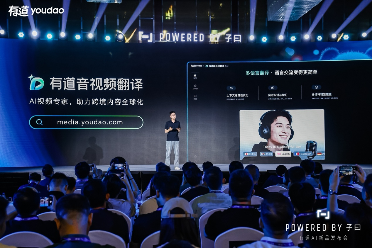 “随着大模型技术的成熟,AI翻译开始进入到多模态内容的深度理解与生成阶段。”网易有道智能应用事业部负责人张艺介绍,有道全新推出的音视频翻译平台,可支持任意语言音视频处理,一站式完成“听录—识别—翻译—配音”全流程,为出海企业、短视频和影视等领域打造“AI视频专家”。