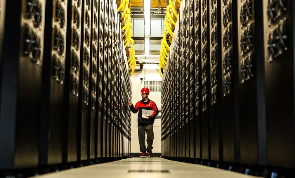 工作人员在贵安超算中心数据机房内工作。新华社记者 刘续 摄