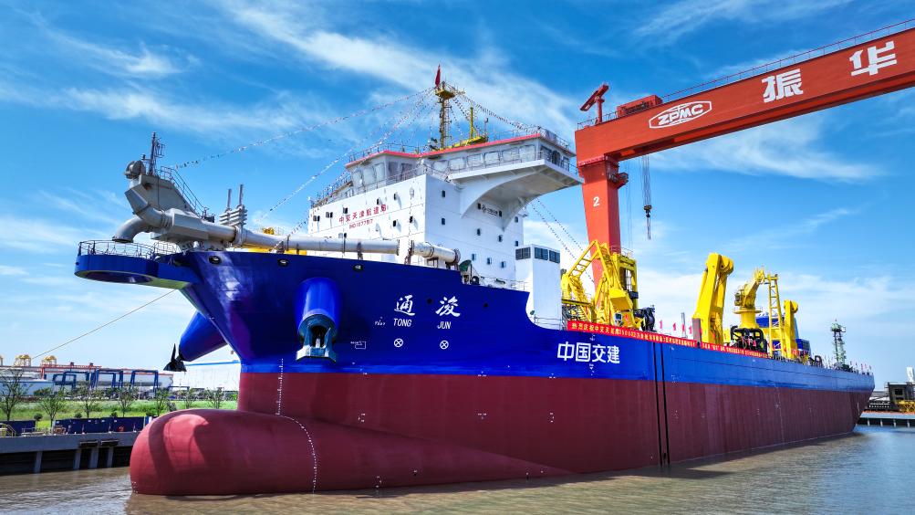 记者8月26日从中交天津航道局获悉,该公司旗下由我国自主设计、研发、建造的3.5万立方米舱容等级超大型耙吸挖泥船“通浚”轮下水。同期下水的还有同等舱容、归属中交广州航道局的“浚广”轮。此次两艘耙吸挖泥船同时取得突破,标志着我国在大型疏浚装备领域取得国际领先地位。