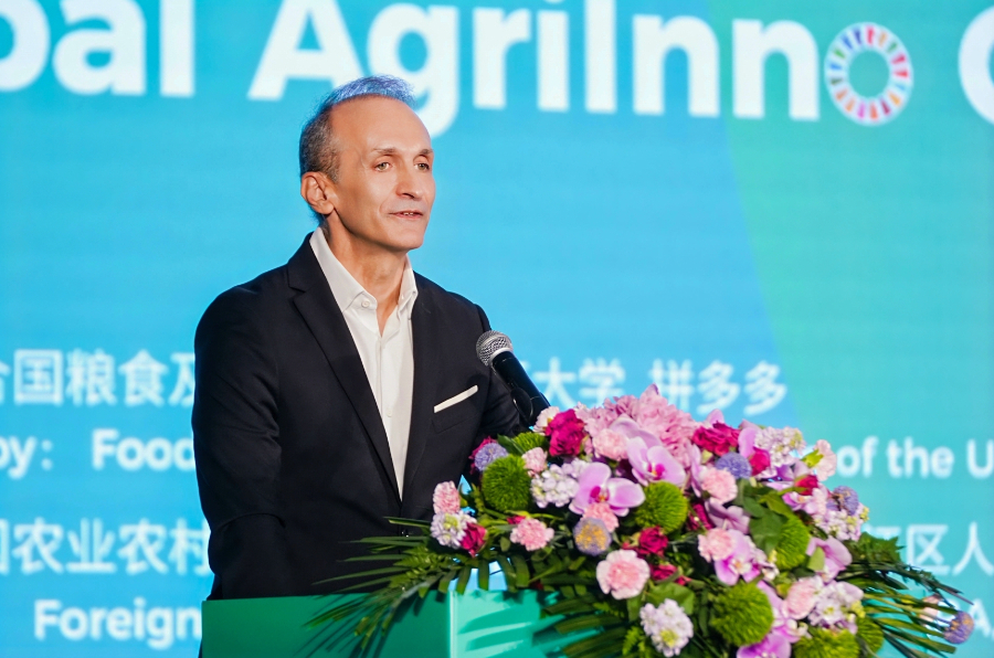 决赛开幕式上,粮农组织创新办公室主任马文森致辞(拼多多供图)
