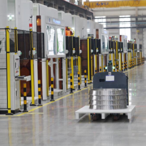 5月22日,自动导引车在洛轴集团智能工厂生产线上作业。新华社记者 李嘉南 摄