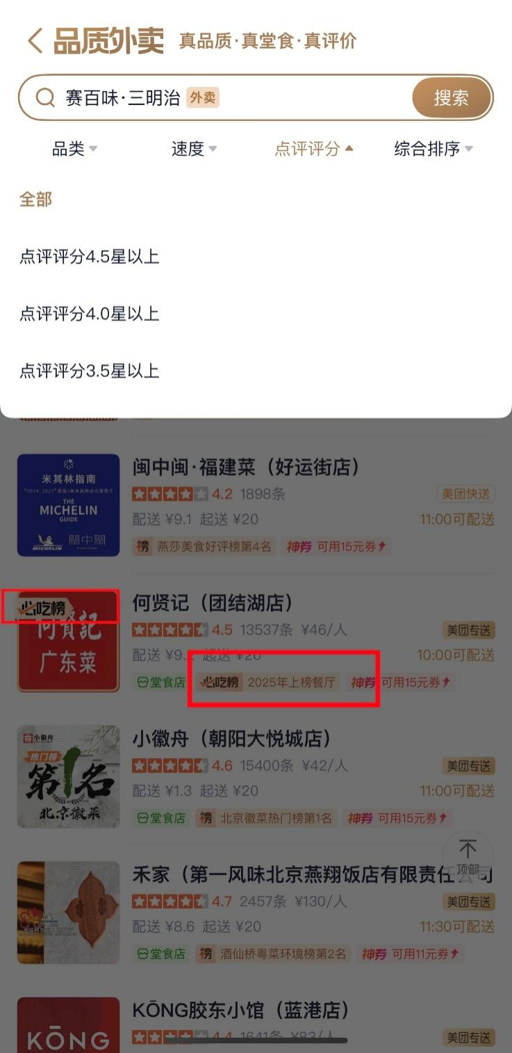 “此次重启‘品质外卖’,是美团基于消费者新需求,整合双平台资源,对过往产品的一次升级。”大众点评相关负责人表示。据其介绍,大众点评在本身优质商家供给的基础上,在“品质外卖”中进一步筛选高分堂食餐厅,并在页面中展示商家的点评评分与评价,这些评价关联“必吃榜”“连锁”“老店”等标签信息,有效填补消费者在点外卖时的决策信息缺口。