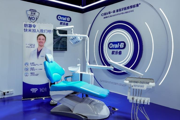 展台内,欧乐-B以其深厚的品牌科研基因作为布展的叙事主线,其标志性的圆形刷头贯穿整个空间,在试刷区也展示了多维度的临床实证研究报告。为了让现场观众更直观地感受科研实力,欧乐-B还设置了口腔检测区,将专业的牙科诊疗环境搬进会场,全面呈现了欧乐-B品牌背后的专业支撑与技术积淀。