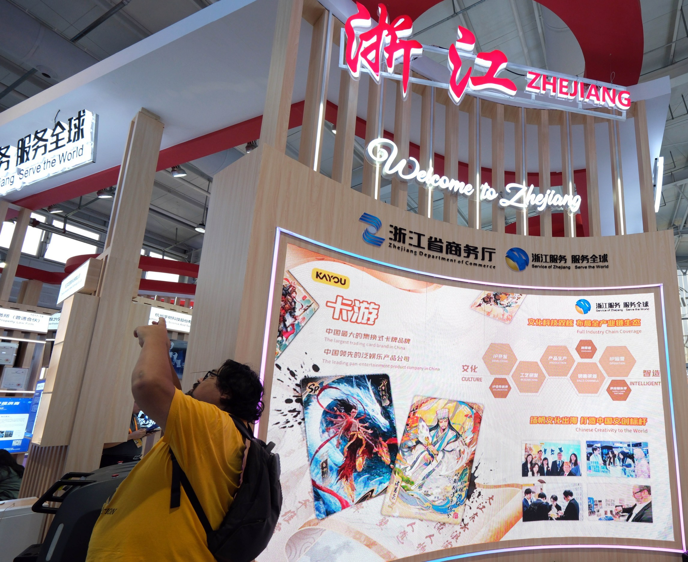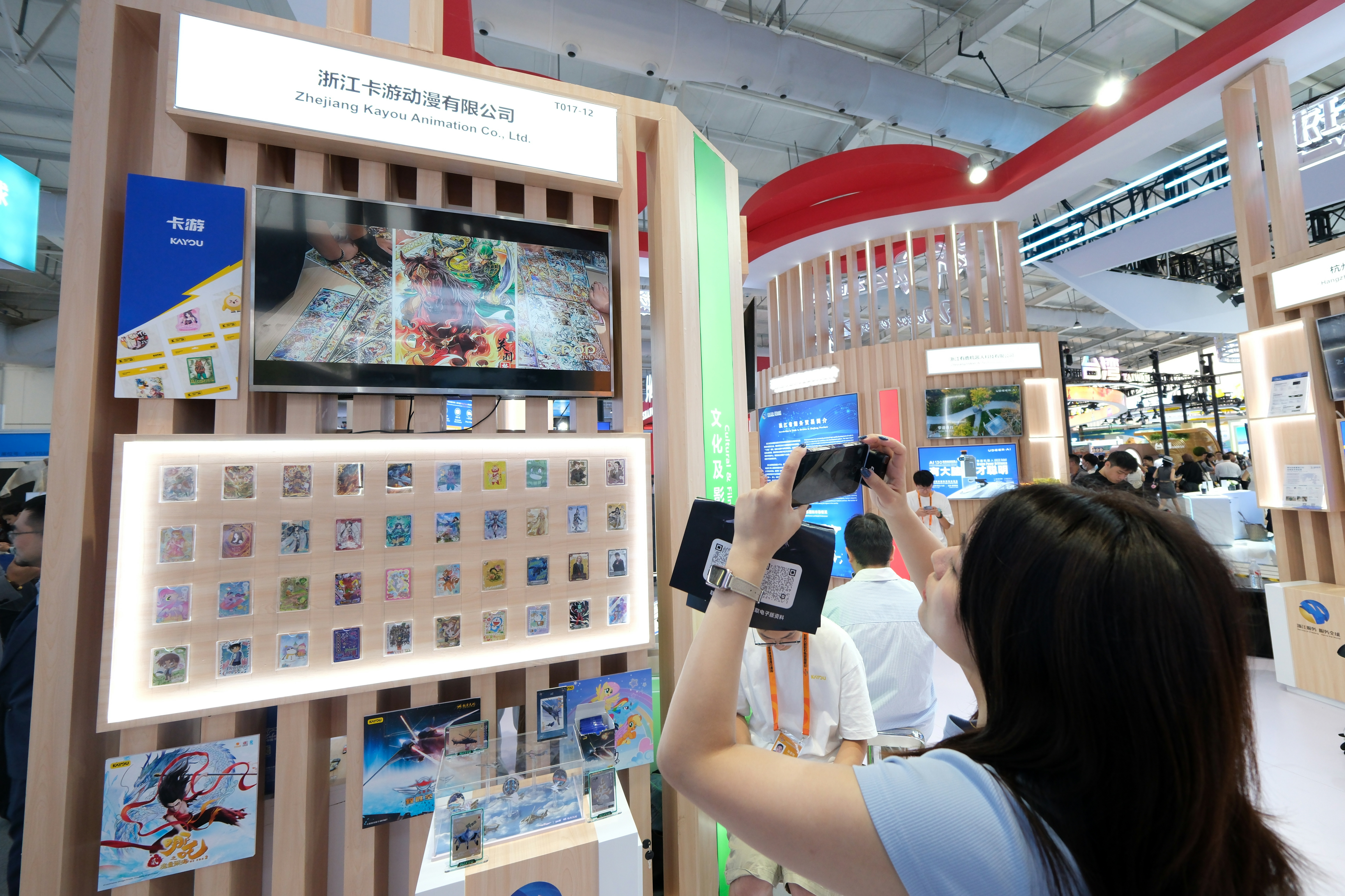 在此次服贸会上,浙江展团以“浙江服务 服务全球”为主题精彩亮相。其中卡游动漫携多款IP卡牌以其独特的文化表达方式精彩亮相,以独特文化表达成为展示中国制造实力、传递文化魅力的“微缩窗口”。