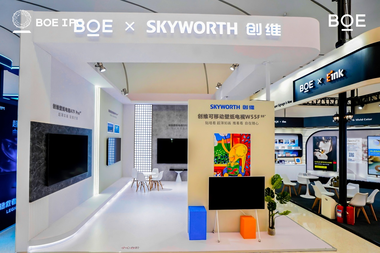 在本届IPC大会生态伙伴区内,BOE(京东方)携手创维、联想、红魔、Eink等十余家知名企业,展示了多款搭载BOE(京东方)领先技术的智能终端产品,充分体现出“Powered by BOE”的产业价值创新生态。创维带来了超薄贴墙的壁纸电视A7F Pro、百吋巨幕电视等全系列高端电视;联想展示了由BOE(京东方)独供Oxide技术的ThinkVision P系列智慧低碳显示器;红魔则带来多款电竞手机及游戏本等专业装备。此外,理想、蔚来等智能电动车品牌的亮相,进一步展现了物联网时代“屏”与出行融合的无限可能。