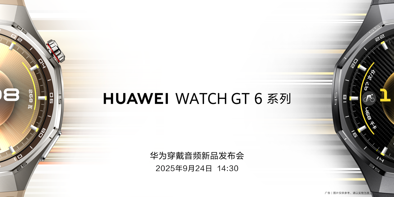 9月15日,华为终端正式宣布了新品发布会的时间,并透露华为WATCH GT 6系列将于9月24日在华为穿戴音频新品发布会上正式亮相。