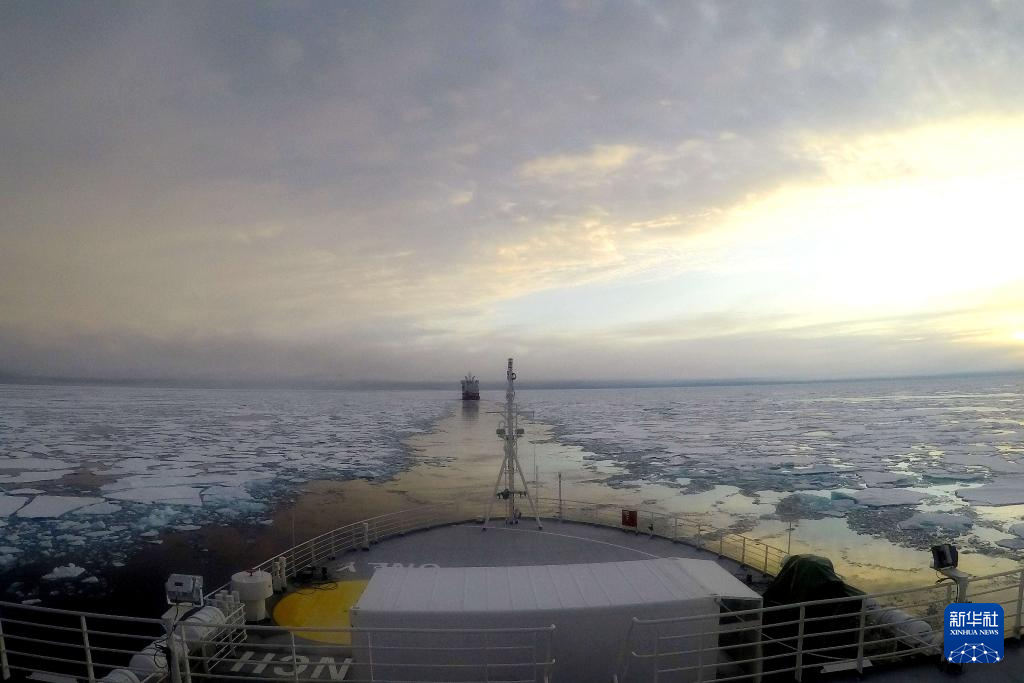 记者看到,“雪龙2”号提前规划好航线,沿航线附近冰薄、冰少区域机动航行。冰情许可时,航迹保持直线,减小冰区转弯半径。两船配合默契,“深海一号”冰区航行顺利。
