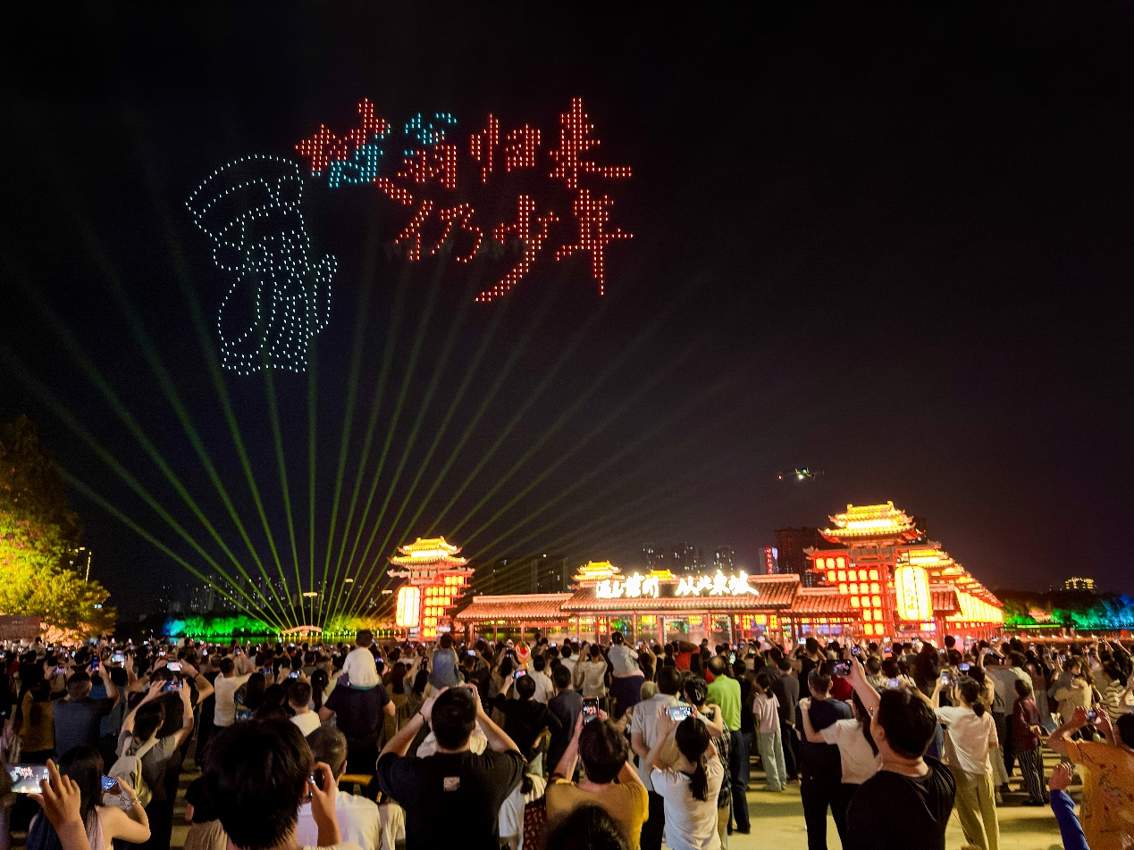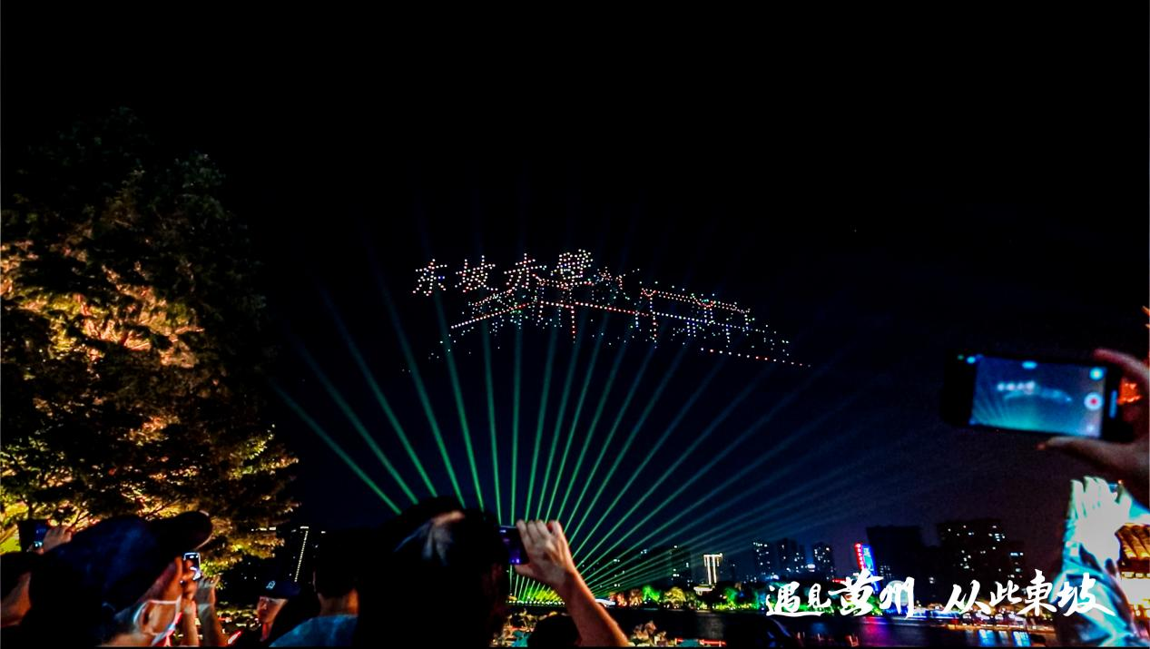 千架无人机表演,在空中勾勒东坡文化意象,点亮双节星空;“苏东坡”黄州文旅IP形象发布,景区NPC变成游客们可以互动的伙伴,周边文创产品让东坡先生变成可以带走的“礼物”;宋风“东坡市集”同步开市,沉浸式逛吃游购娱,在景区即可以实现一体化的旅行体验。