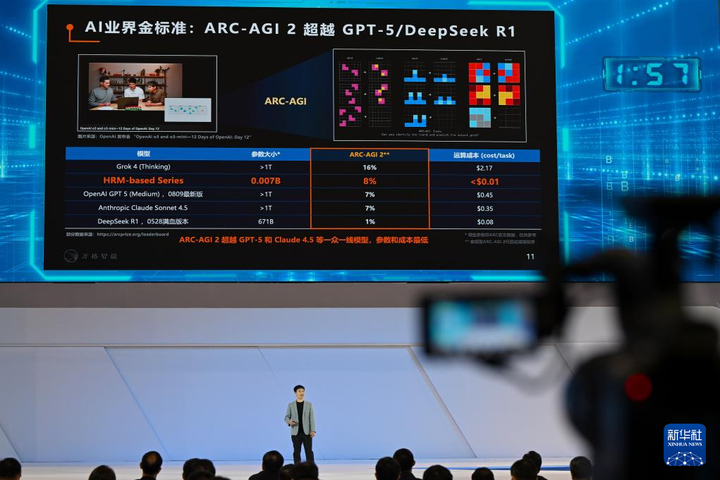 10月15日,在冠军争夺赛现场,清华大学的“基于类脑架构的下一代通用模型及智能体生态”项目参赛者在进行展示。新华社记者 郝源 摄