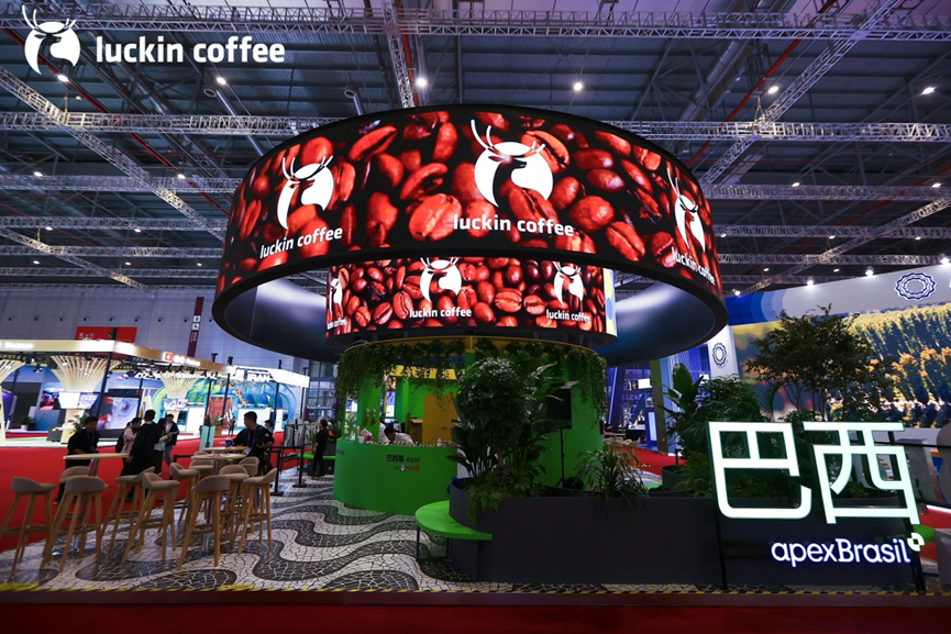 进博会巴西国家馆内,瑞幸咖啡快闪店