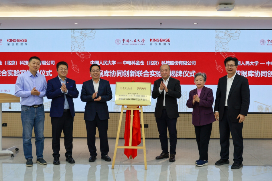 11月5日,中国人民大学—中电科金仓(北京)科技股份有限公司(以下简称“电科金仓”)数据库协同创新联合实验室揭牌仪式在中国人民大学举行。