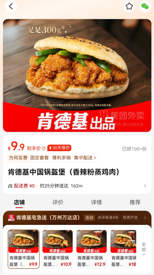 肯德基入驻拼好饭,双方联合开发中国锅盔堡创新产品。(来源:美团拼好饭)
