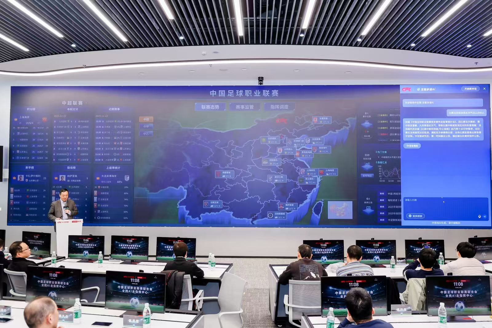 11月18日,由联想与中国足球职业联赛联合会(以下简称“中足联”)共同发起的全栈AI总指挥中心点亮仪式正式举办,联想现场发布了中国足球行业L3级赛事智能体——"足智多谋AI",标志着中国足球赛事进入“数据驱动智能升级”的新阶段。
