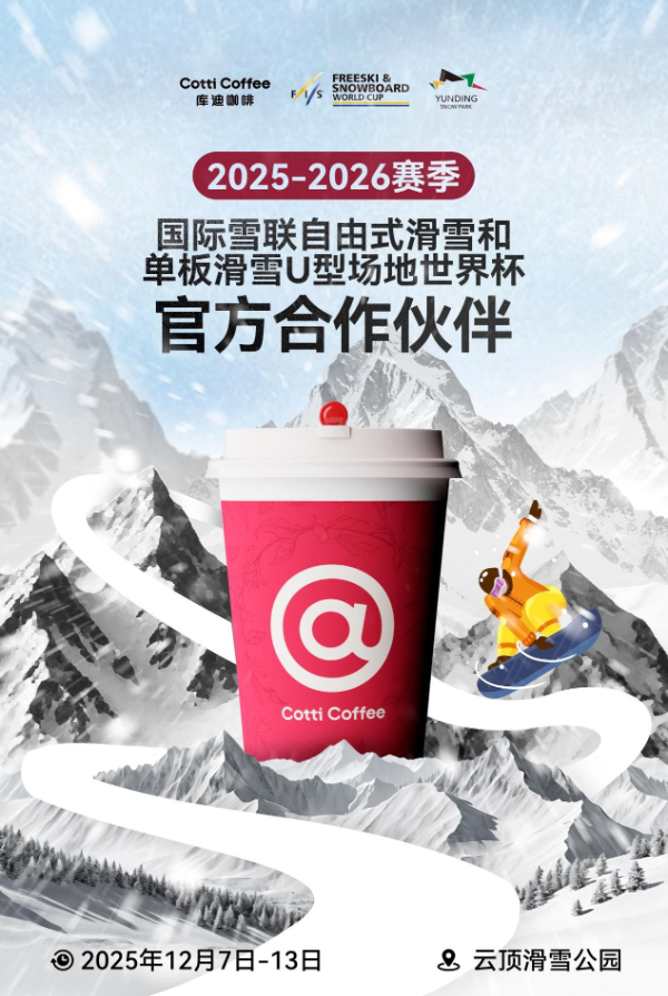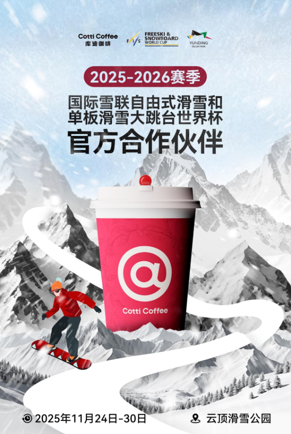 11月21日,库迪咖啡宣布与国际雪联赛事组委会达成合作,将以官方合作伙伴身份亮相国际雪联2025-2026赛季三大滑雪世界杯比赛现场。此次跨界合作以"冰雪运动+潮流咖啡"的创新融合为核心,标志着库迪咖啡将以高品质咖啡体验为全球顶级冰雪赛事注入年轻活力,也成为中国咖啡品牌链接国际体育IP的又一里程碑事件。